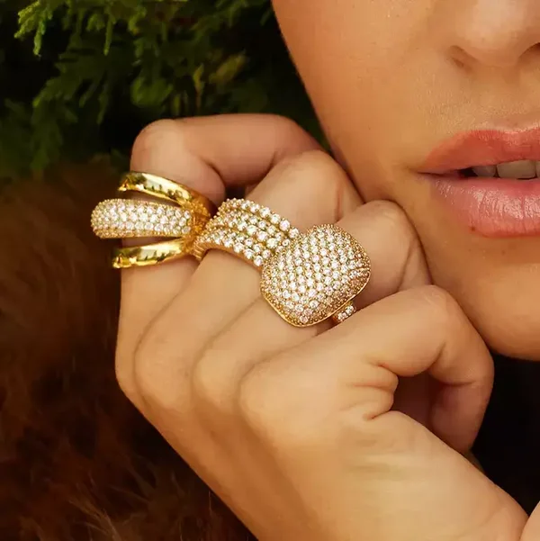 Deze ring is gemaakt van hypoallergeen, goldplated edelstaal met kleine zirkonia's. De ring is verkrijgbaar in twee maten: S = 54 (17,5)L = 58 (18,5) Uiteraard is de goudplating van topkwaliteit, zoals je van ZAG BIJOUX gewend bent!