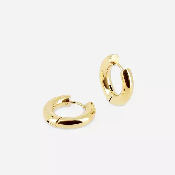 Deze klapcreolen (ze sluiten dus met een klikje) zijn gemaakt van hypoallergeen, goldplated edelstaal.